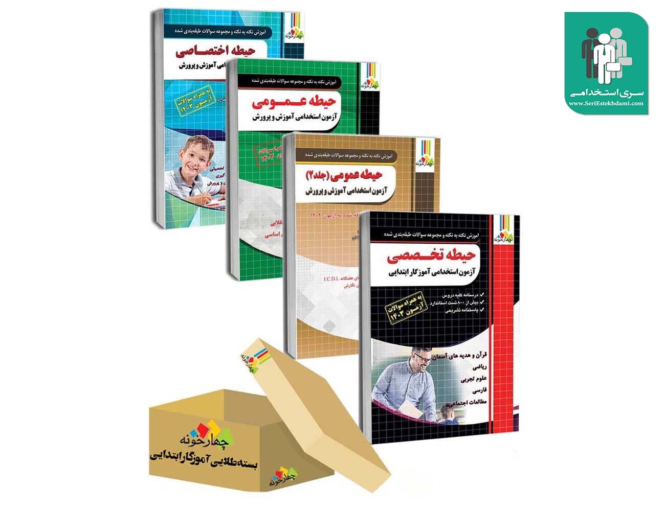 بسته کتب جامع ۴ حیطه آزمون استخدامی آموزگار ابتدایی 1404 - انتشارات چهارخونه